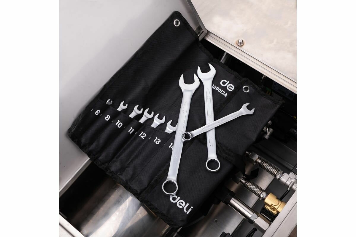 Купить Набор ключей комбинированных гаечных DELI DL130012A 12шт 6-24мм тканевая упаковка (DL130012A)