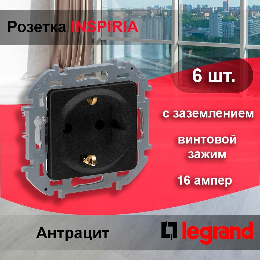 Купить 6 шт. Legrand INSPIRIA Антрацит Розетка 2К+З - немецкий стандарт - 16 А - 250 В, 673723