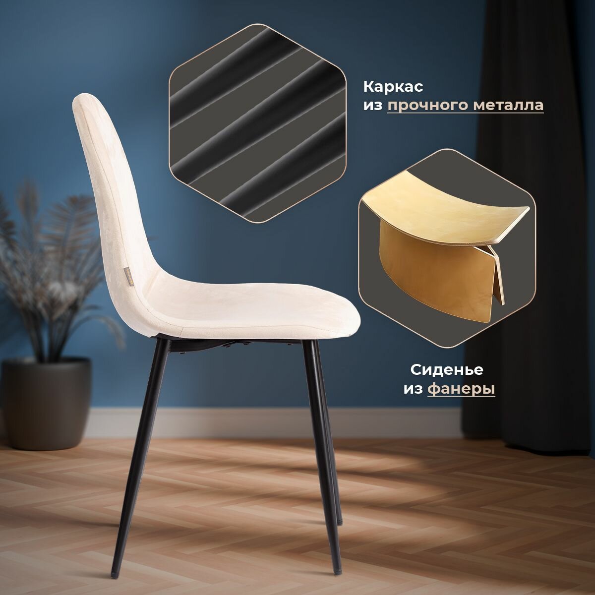 Стул BREEZE (mod. 4724) Велюр/металл , 44 х 53 х 87 см, Light beige (светло-бежевый) HLR1 / натуральный (Комплект из 4 шт.)