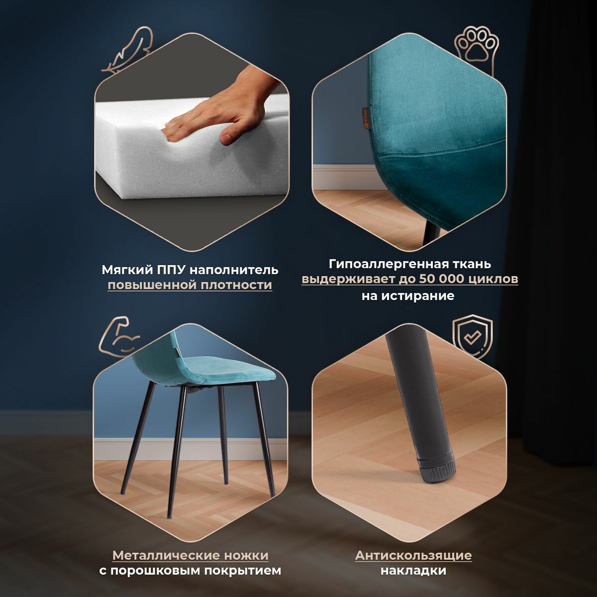 СохранитьКомплект стульев для кухни TetChair BREEZE (mod. JSC-58), 4 шт, велюр, светло-синий/черный интересное: