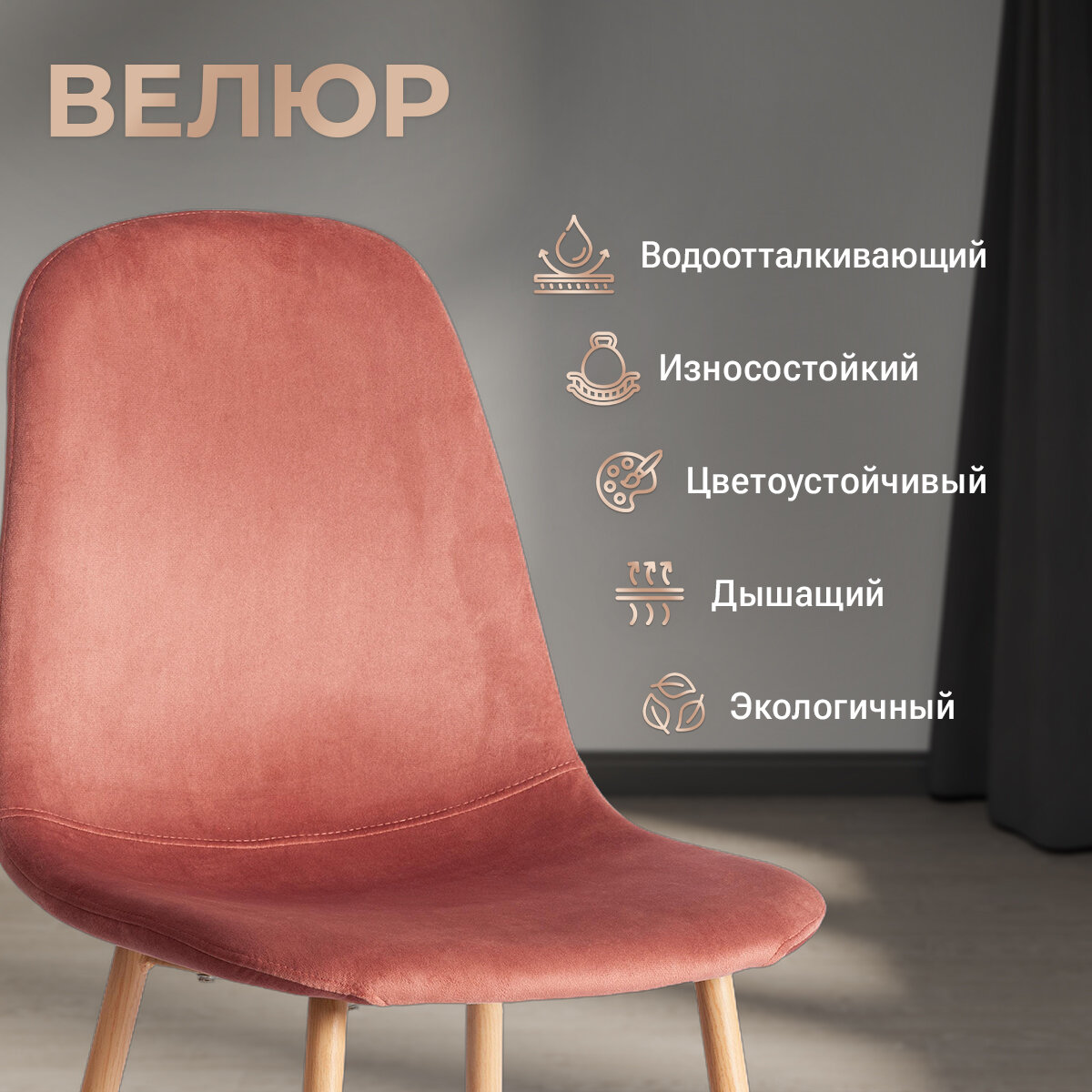 Стул для кухни TetChair BREEZE (mod. 4724) / 1 шт. в упаковке, металл/вельвет, 44х48х87см, коралловый/натуральное дерево