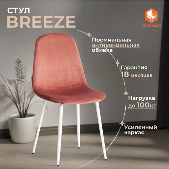 Комплект стульев для кухни TetChair BREEZE (mod. 4724), вельвет/металл, 45х64х82 см, Coral (коралловый)/белый (4 шт. в 1 упаковке)
