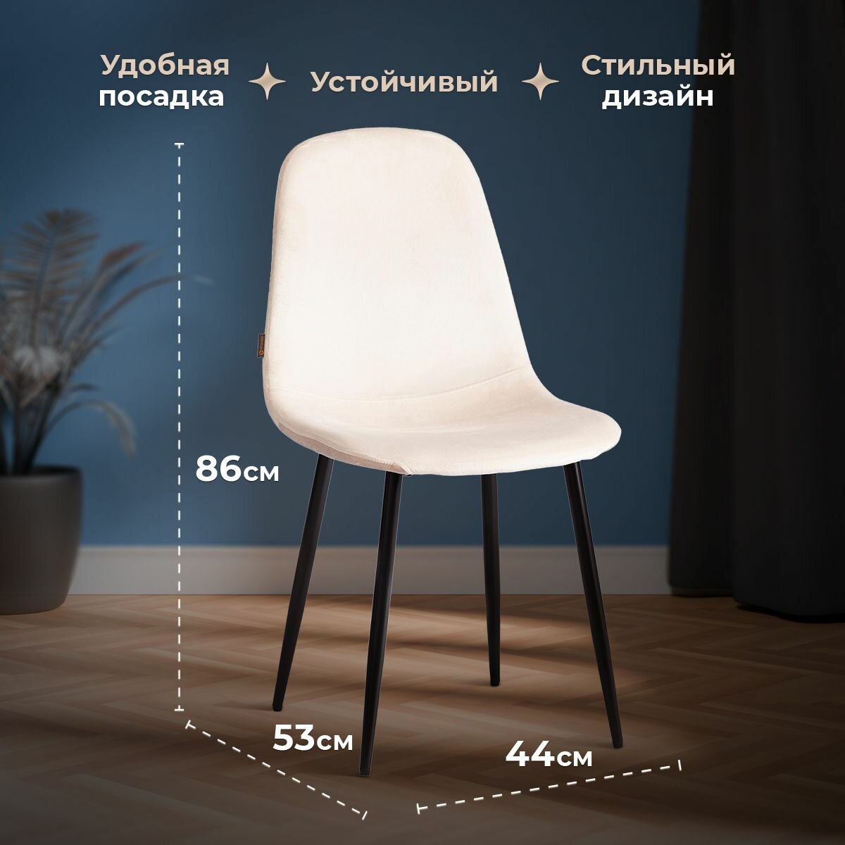 Стул обеденный Tetchair BREEZE (mod. 4724) / 1 шт. в упаковке, вельвет/металл, 44 х 53 х 87 см, Light beige (светло-бежевый) HLR1 / натуральный