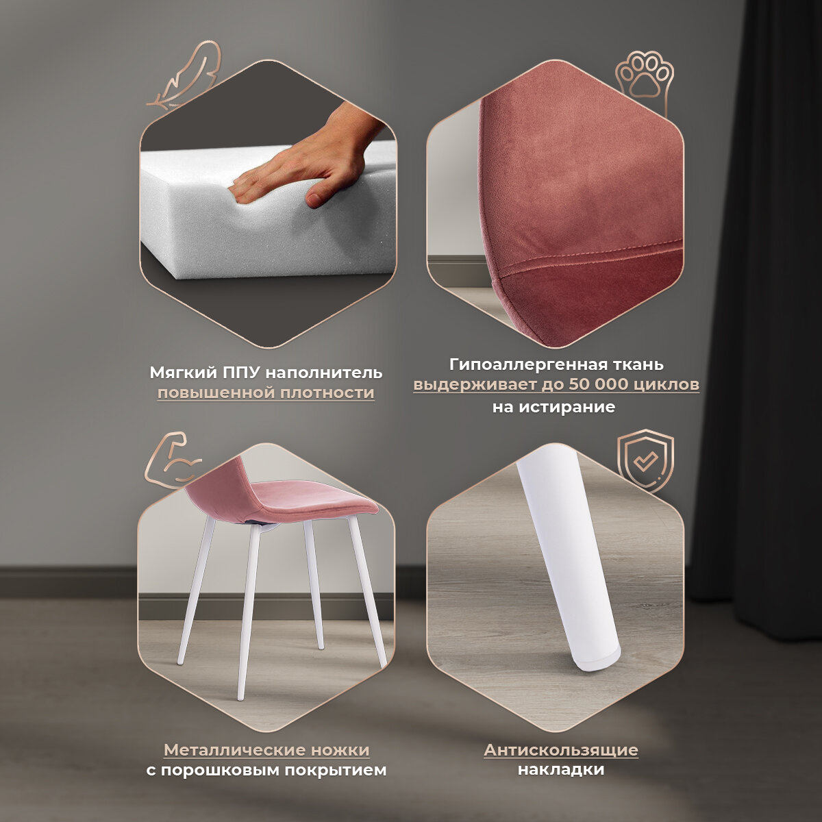 Стул обеденный TetChair BREEZE WHITE коралловый вельвет, ножки металл белый, T-19185