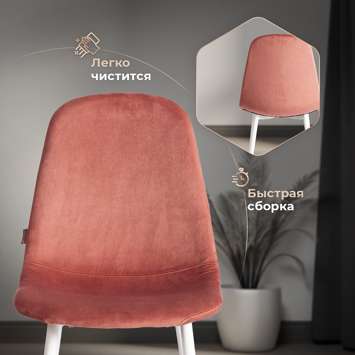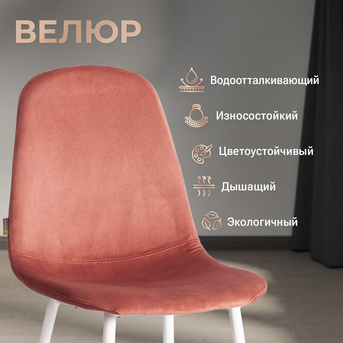 Комплект стульев для кухни TetChair BREEZE (mod. 4724), вельвет/металл, 45х64х82 см, Coral (коралловый)/белый (4 шт. в 1 упаковке)