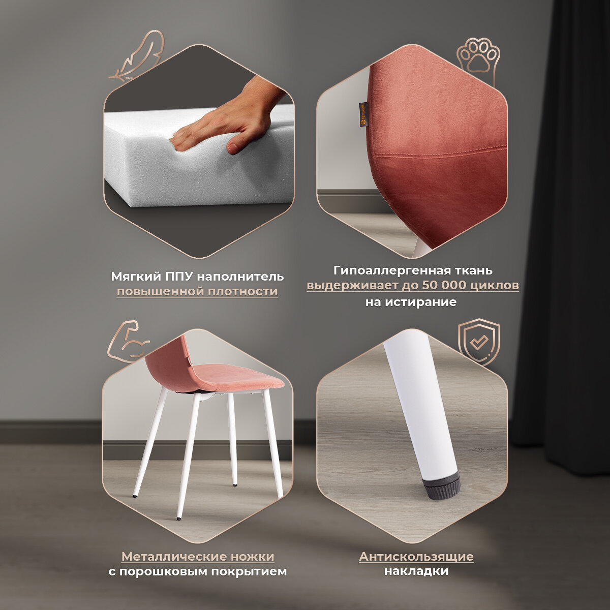 СохранитьКомплект стульев для кухни TetChair BREEZE (mod. JSC-58), 4 шт, велюр, коралловый/белый интересное: