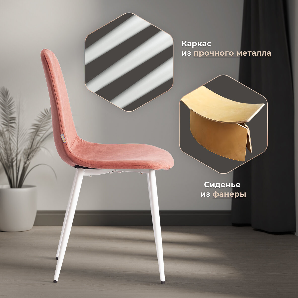 Стул BREEZE (mod. 4724) / 1 шт. в упаковке (19 609) TetChair вельвет/металл, 44 х 53 х 87 см, Coral (коралловый) HLR44 / белый