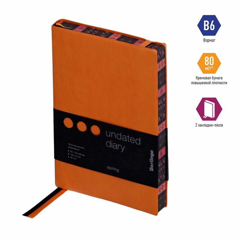 Ежедневник недатированный Berlingo B6, 160 листов, кожзам, "Spring", полноцветный срез, оранжевый (UD0_88601)