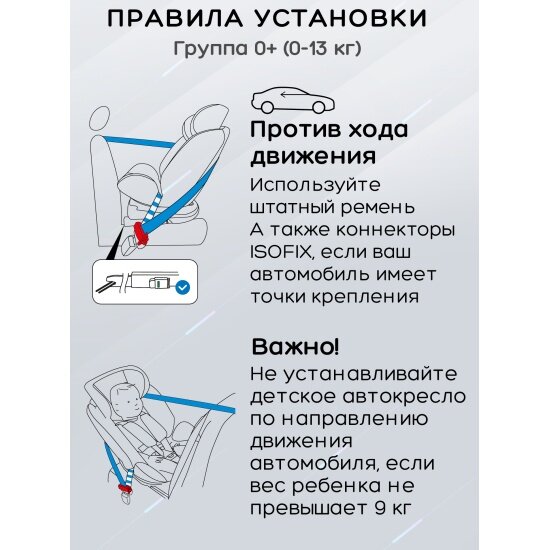 | Особенности установки | фиксатор натяжения штатного ремня / якорный ремень |