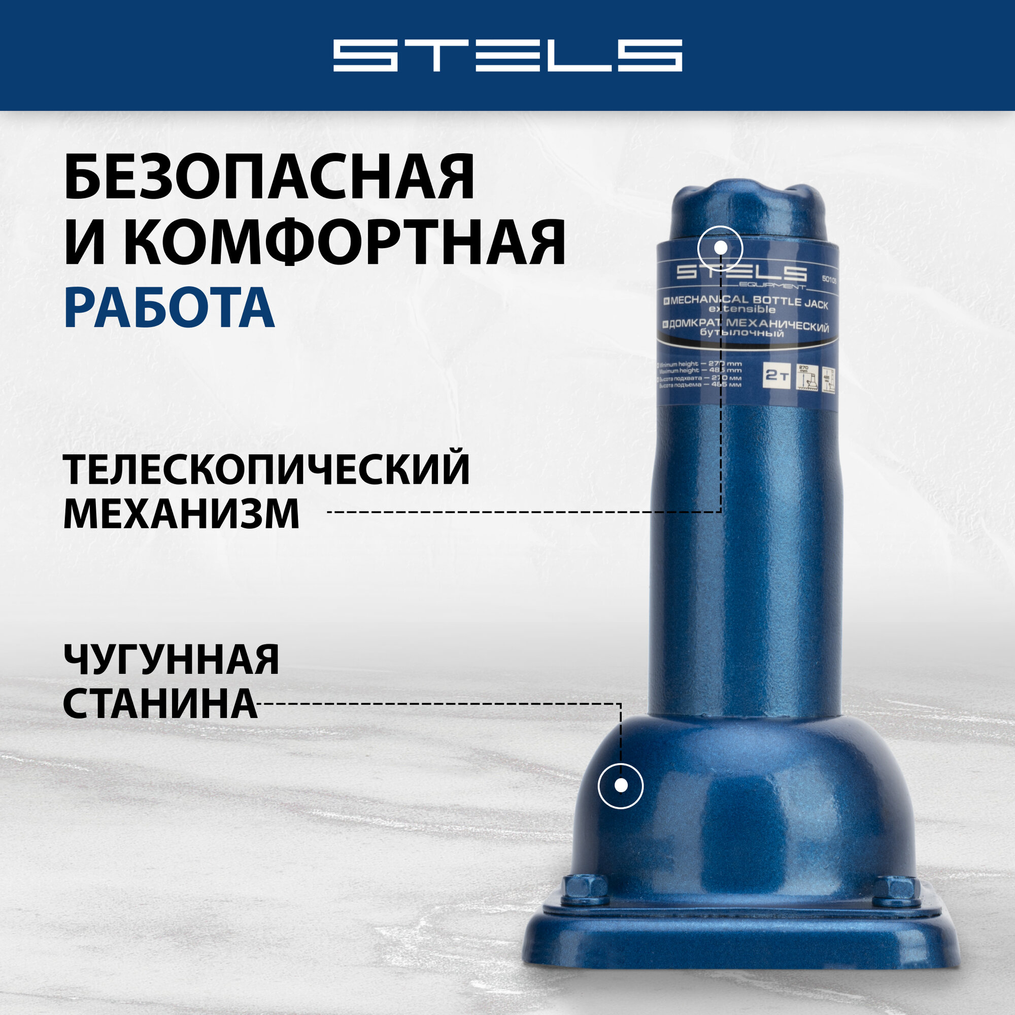 Домкрат механический бутылочный STELS 2 т, h подъема 270–485 мм, 50105