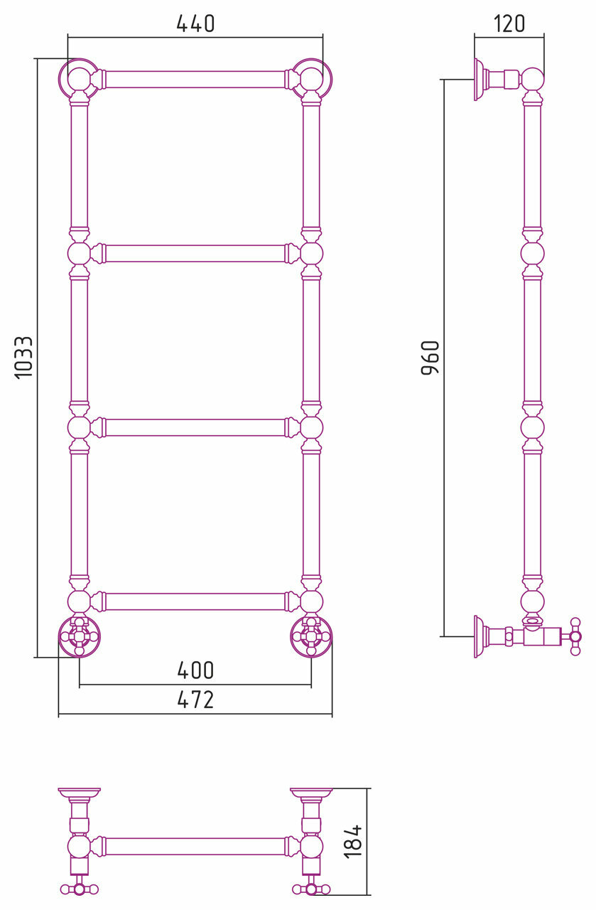 Полотенцесушитель водяной Сунержа 00-0280-8650 Ренессанс Полотенцесушитель водяной 860х500 мм, без покрытия