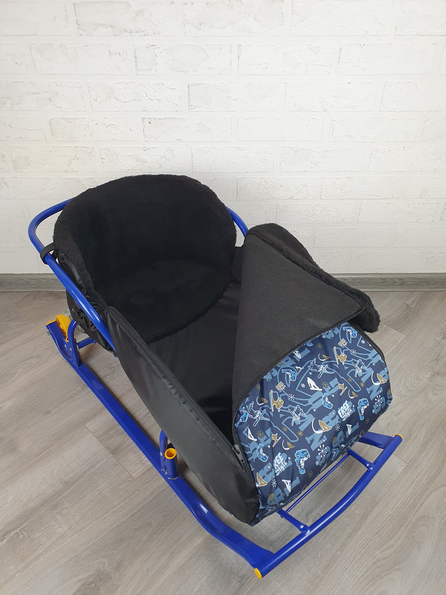 Матрасик для санок меховой 3 в 1 Спорт темно-синий бок черный мех черный интересное: