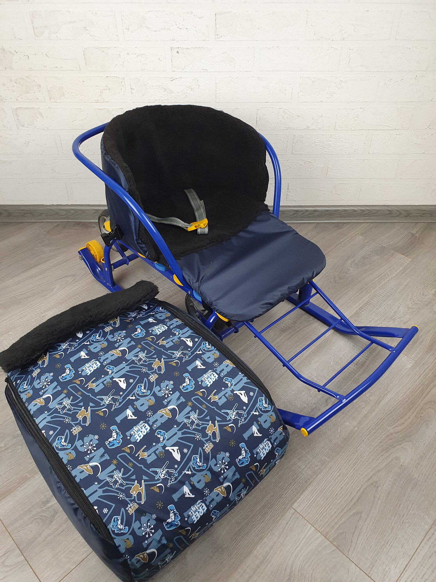 Матрасик для санок меховой 3 в 1 Спорт темно-синий бок темно-синий мех черный интересное: