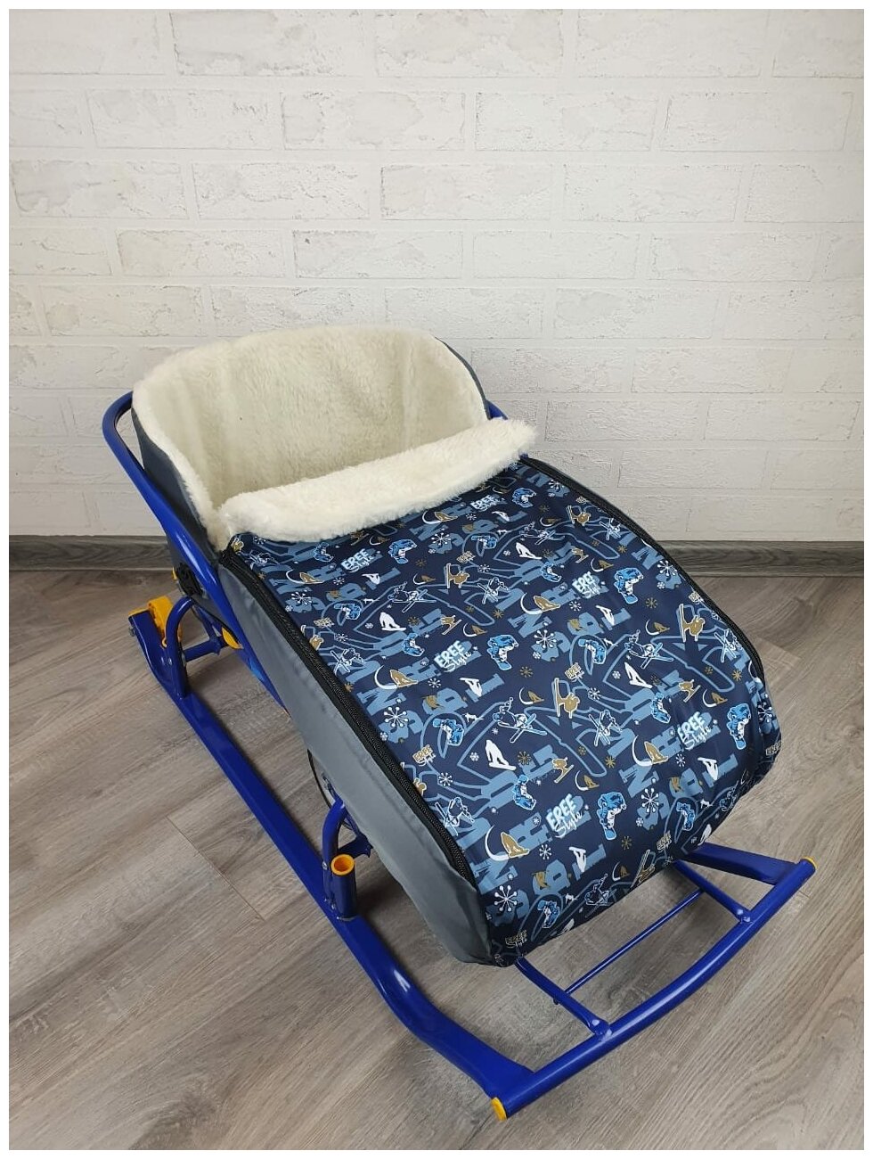Матрасик для санок меховой 3 в 1 Спорт синий бок серый мех белый интересное: