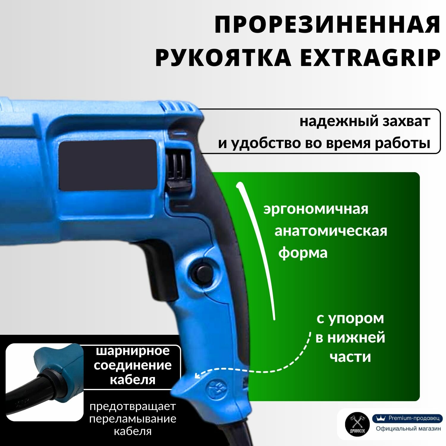 | Минусы: | Очень маленькая длина провода. Это казалось бы мелочь, но становится очень неудобно работать. Сильно достал. Приходится везде таскать с собой удлинитель, который вечно цепляется за ту же стремянку.