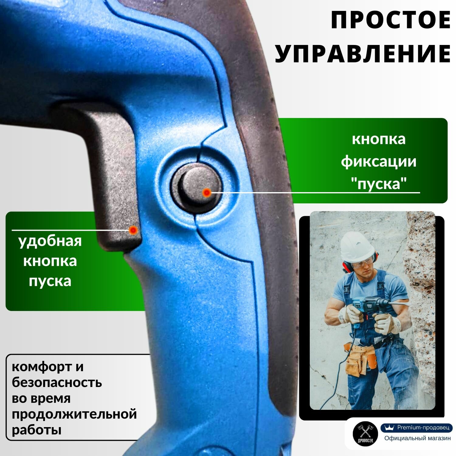 Неудобный патрон для сверла, я бы сказал что если надо много сверлить, то либо покупать другой патрон, либо другой перфоратор. Туговат переключатель реверса |