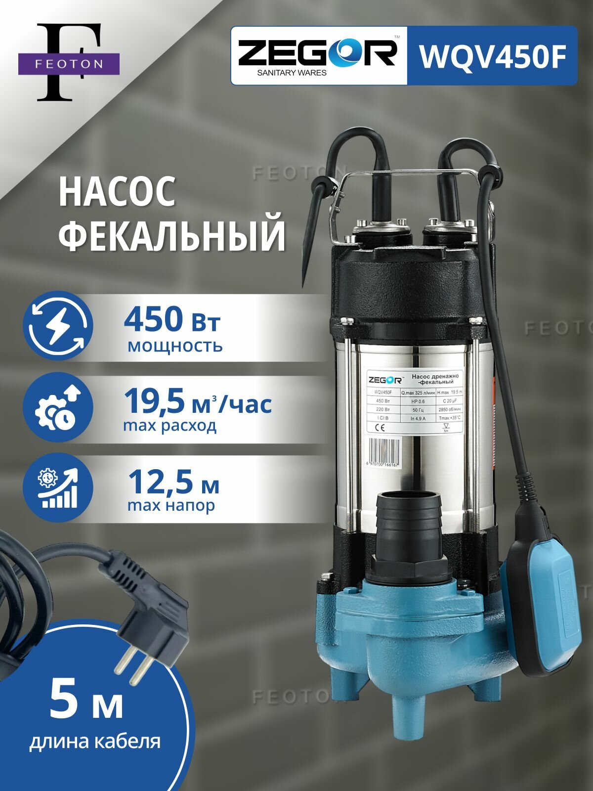 Насос фекальный WQV450F ZEGOR (для грязной воды) интересное: