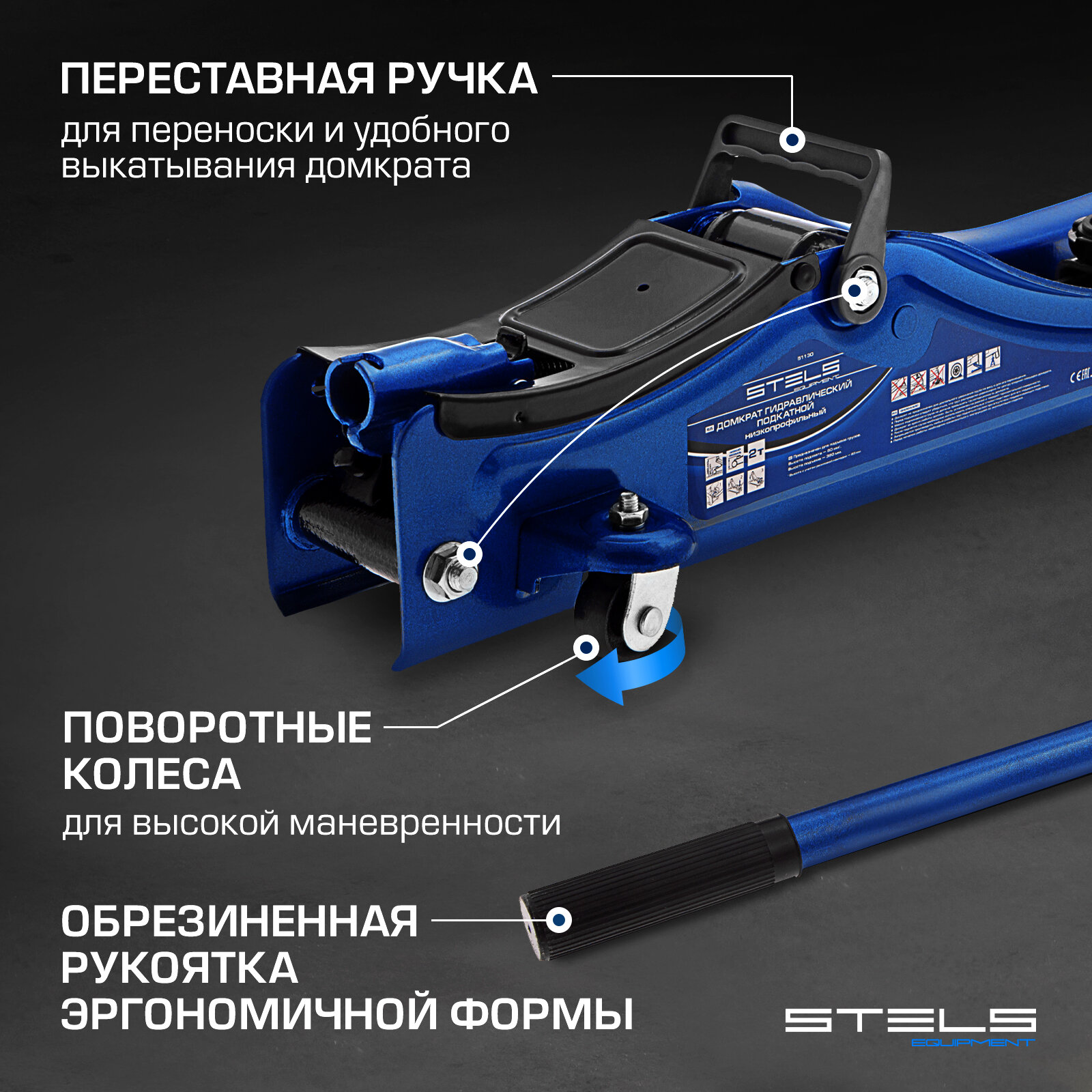 Домкрат подкатной гидравлический Stels Low Profile 51130 (2 т) синий