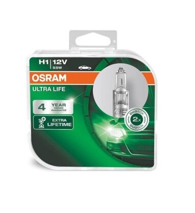 Лампа галогенная Osram Ultra Life H1 12V 55W, 2 шт.
