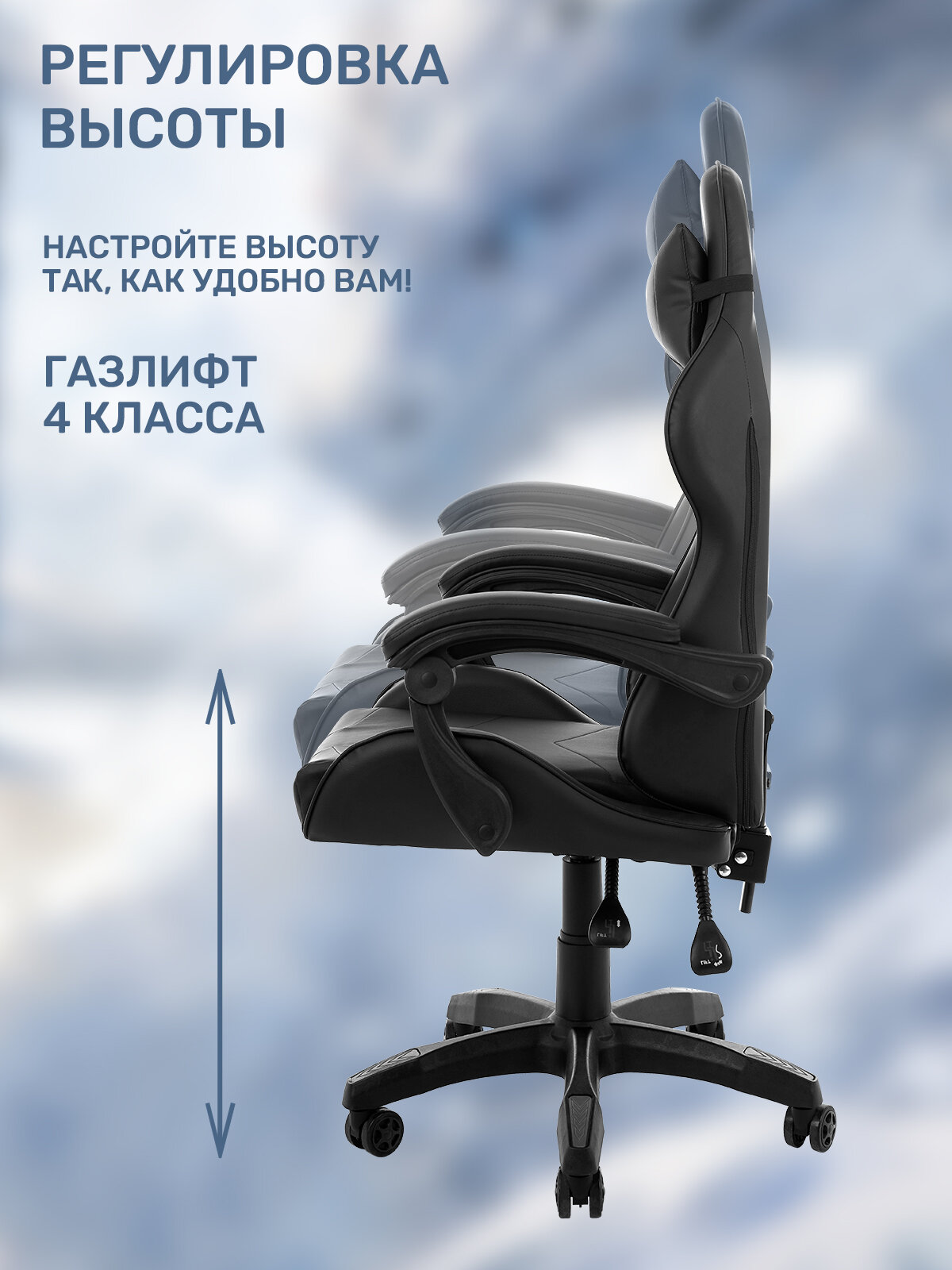 | Конструктивные особенности | газлифт / колеса (ролики) / подголовник / подлокотники / поясничный упор |