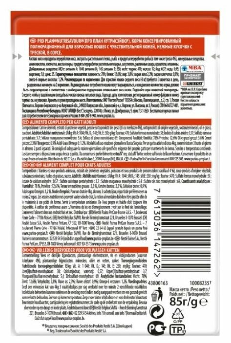Ниже Вы можете прочитать отзывы на Purina Pro Plan (паучи) Паучи Кусочки в соусе для кошек с треской (Derma) 1234277112457450 0.085 кг 25358 (34 шт), ознакомится с подробными характеристиками, посмотреть интересные обзоры и фотографии на Purina Pro Plan (паучи) Паучи Кусочки в соусе для кошек с треской (Derma) 1234277112457450 0.085 кг 25358 (34 шт).