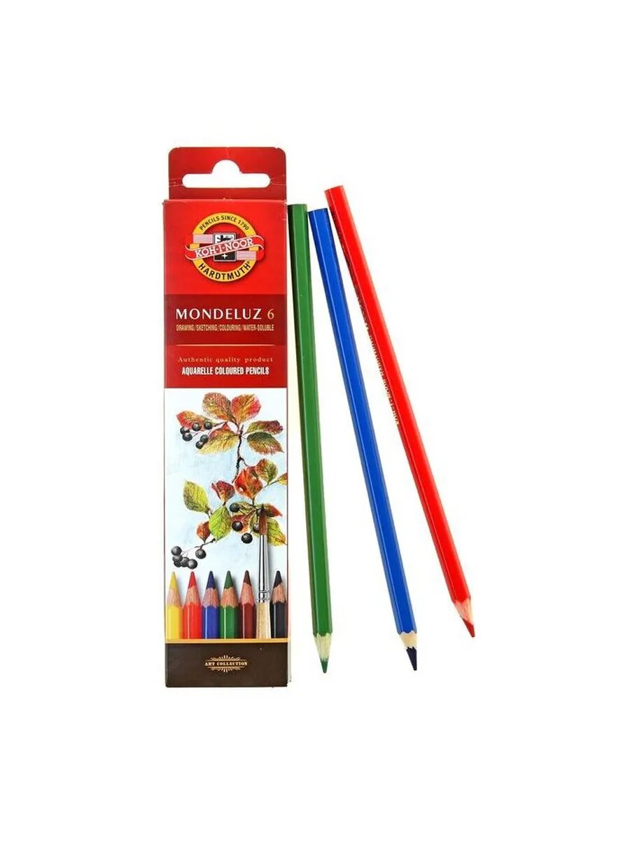 Карандаши цветные KOH-I-NOOR акварельные художественные "Mondeluz", 6 цветов, 3,8 мм, заточенные (3715006001KSRU)