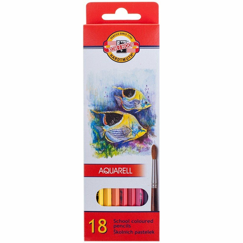 Карандаши акварельные KOH-I-NOOR "Рыбы", 18 цветов, заточенные, картон, европодвес (3717018004KSRU)
