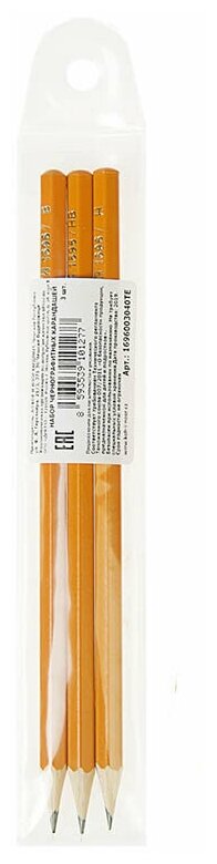 Набор чернографитных карандашей KOH-I-NOOR "1696", 3 шт, Н, HB, В, заточенные (1696003040TE)