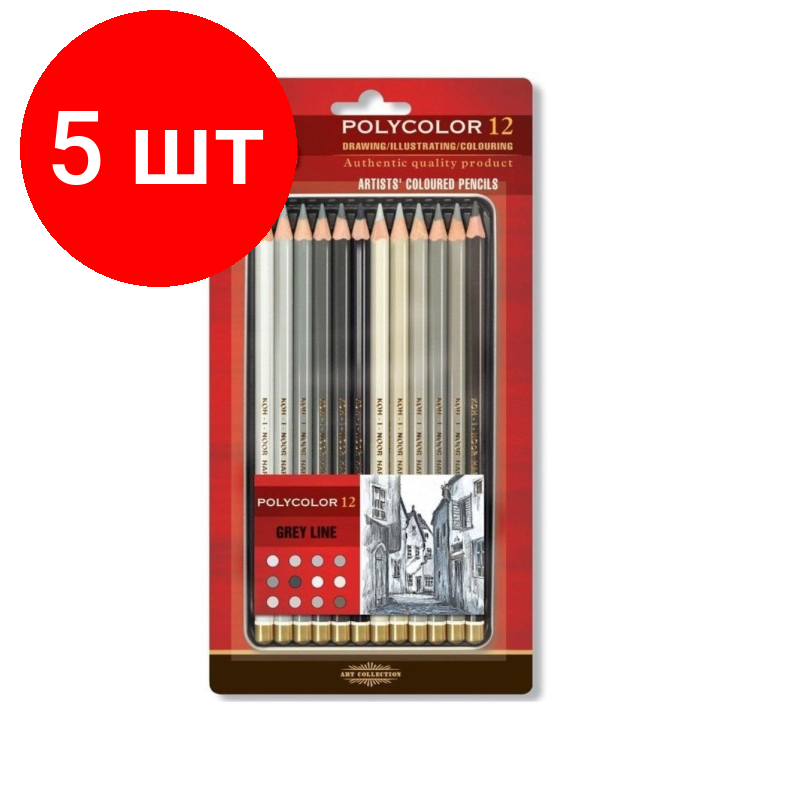 Купить Комплект 5 наб, Карандаши цветные худож POLYCOLOR серые цвета 12цв/наб мет. кор 3822012013BL