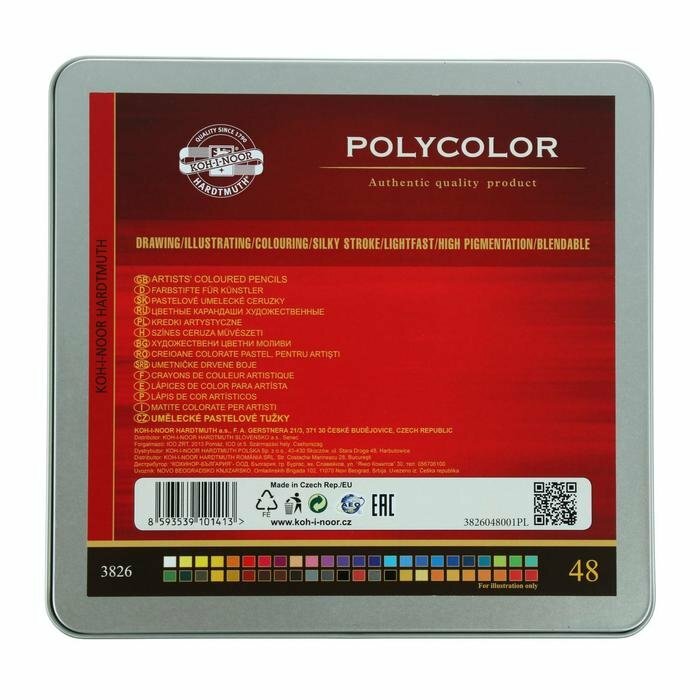 Карандаши цветные профессиональные POLYCOLOR 48 цветов в металлическом пенале, артикул 3826048001PL 3826048001PL Карандаши цветные художественные Koh-I-Noor "Polycolor" 48цв., заточен., метал. пенал