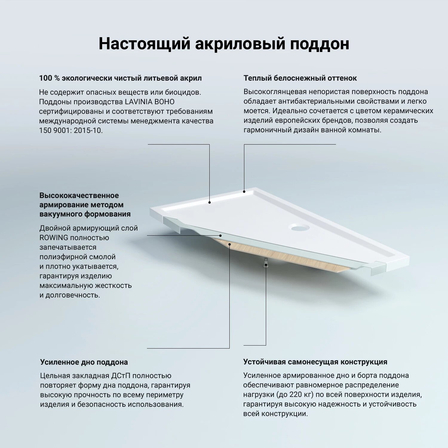 Душевой поддон Lavinia Boho One 3701290S в наборе 2 в 1: акриловый поддон для душа 90х90 см, полукруглый, цвет белый