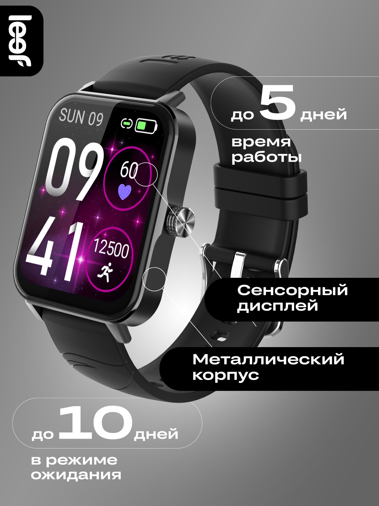 Купить Умные часы LEEF Cygnus, мониторинг пульса, давления, кислорода в крови, уведомления о вызовах и сообщениях, цвет черный