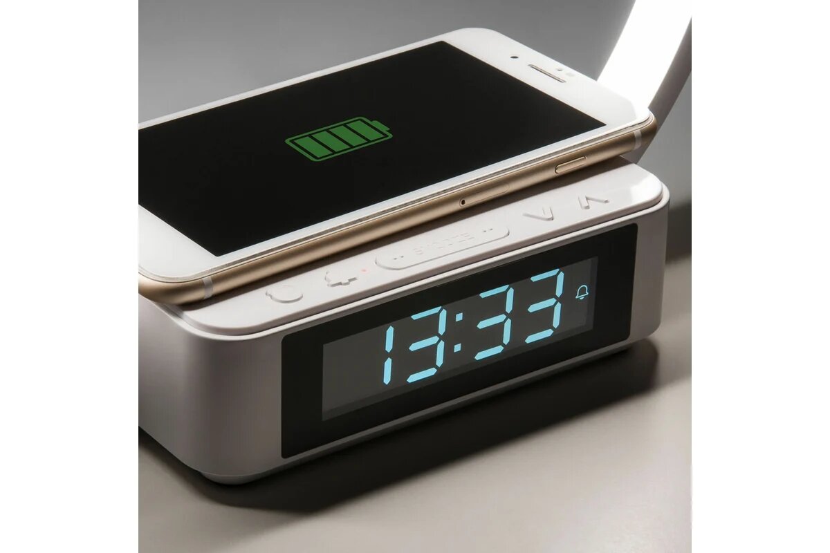 Eurosvet Светодиодная настольная лампа с беспроводной зарядкой и будильником 80505/1 белый a054131
