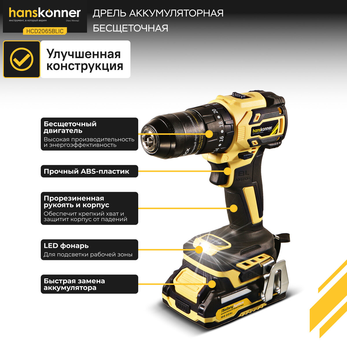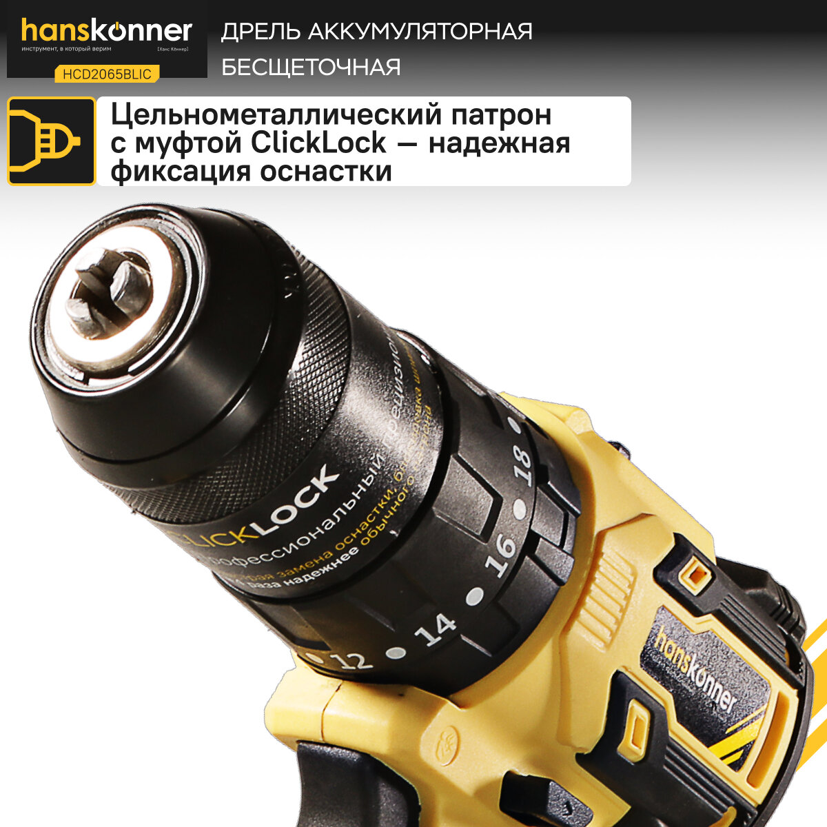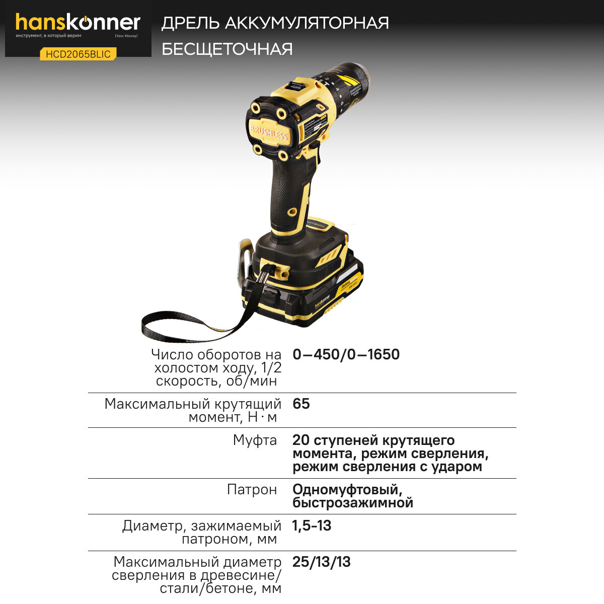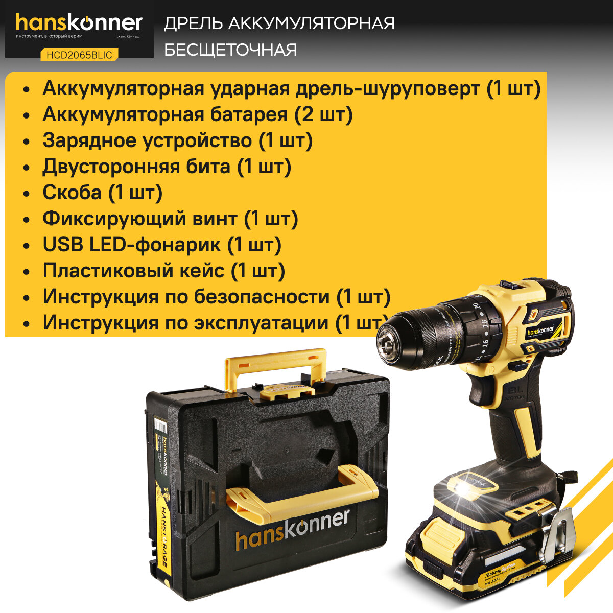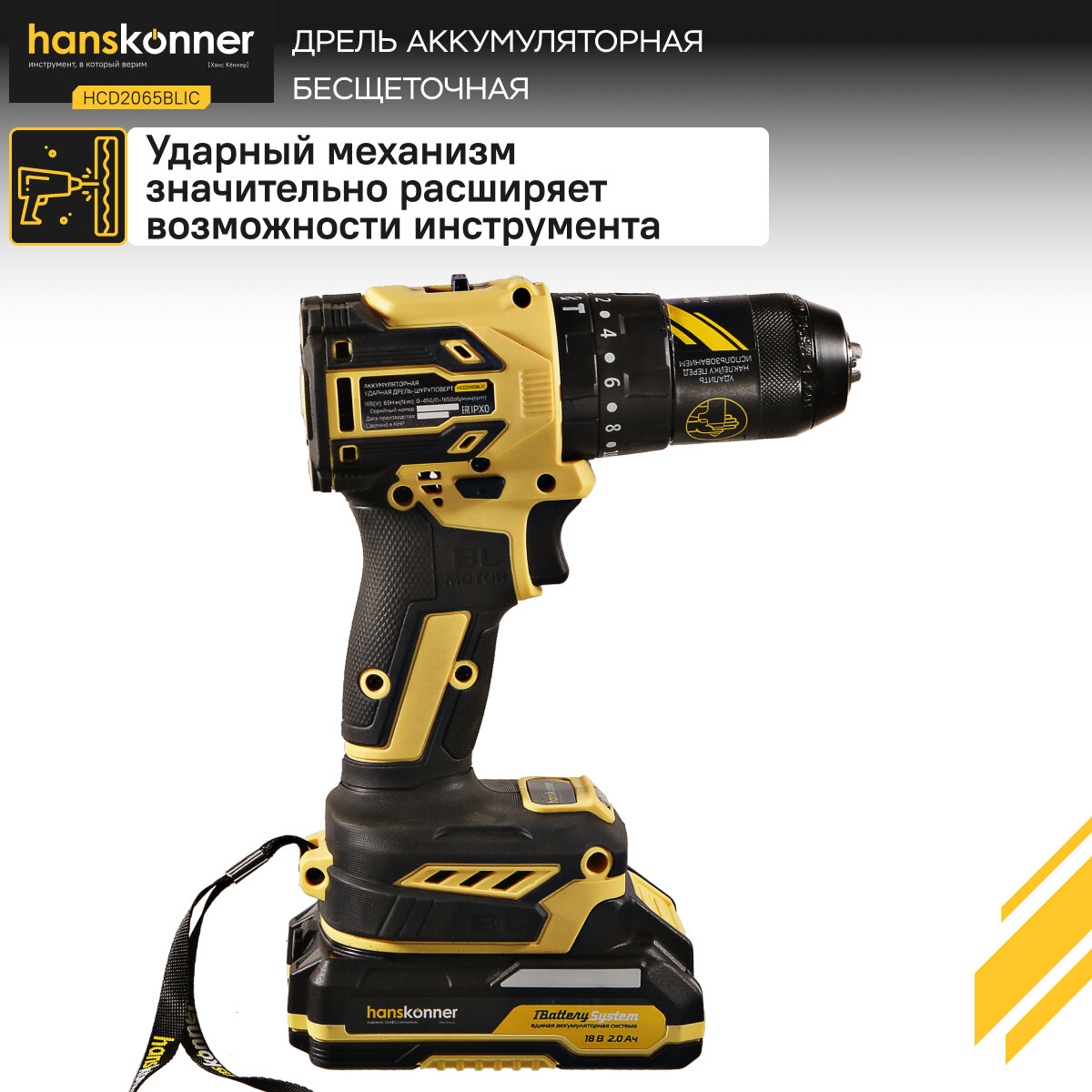 Купить HCD2065BLIC Аккумуляторный шуруповерт Hanskonner 1BatterySystem