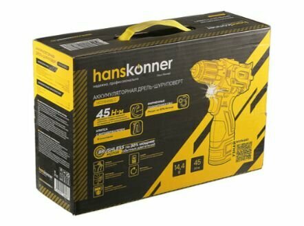 Купить Дрель-шуруповерт Hanskonner HCD1645BLC аккумуляторная бесщеточная (14.4В, 2акк*2,0А/ч, 45Н/м, сумка-кейс)