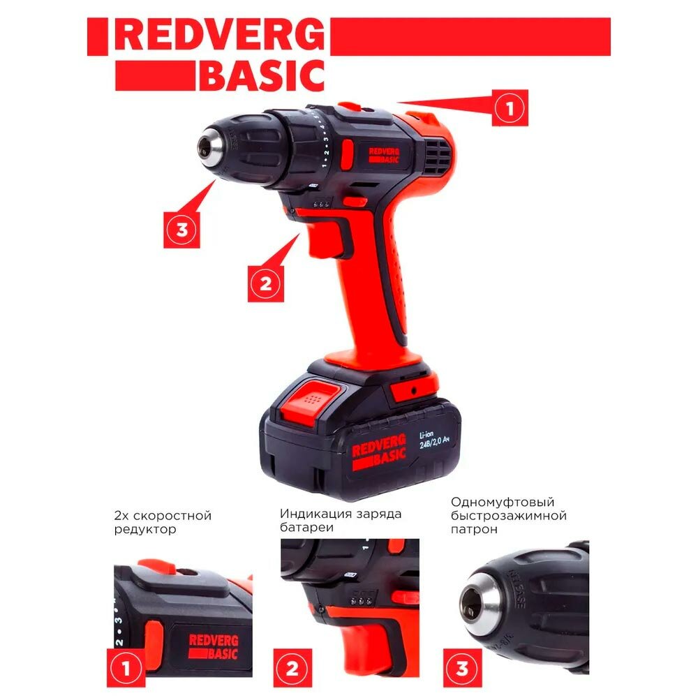 Дрель-шуруповёрт Redverg SD24L/2-2 интересное: