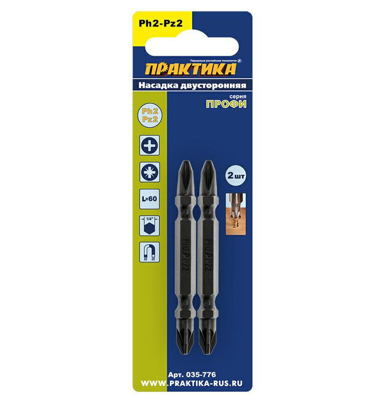 Бита двусторонняя PH2-PZ2 Профи (2 шт; 60мм) ПРАКТИКА 035-776