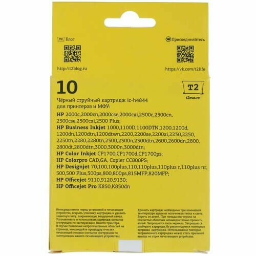 T2 C4844a Картридж 10 (ic-h4844) для HP 2000c/Business InkJet 1200/2200/2600/2800/3000/Pro K850, че .