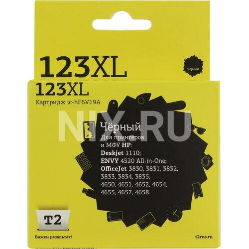IC-HF6V19A Картридж T2 №123XL для HP Deskjet 1110/2130/2131/2132/2133/2134/2620/2630/2632/3639/ENVY 4520/OfficeJet 3830/3831/3832/3833/3834/3835/4650/4651/4652/4654/4655/4657/4658/5255, черный