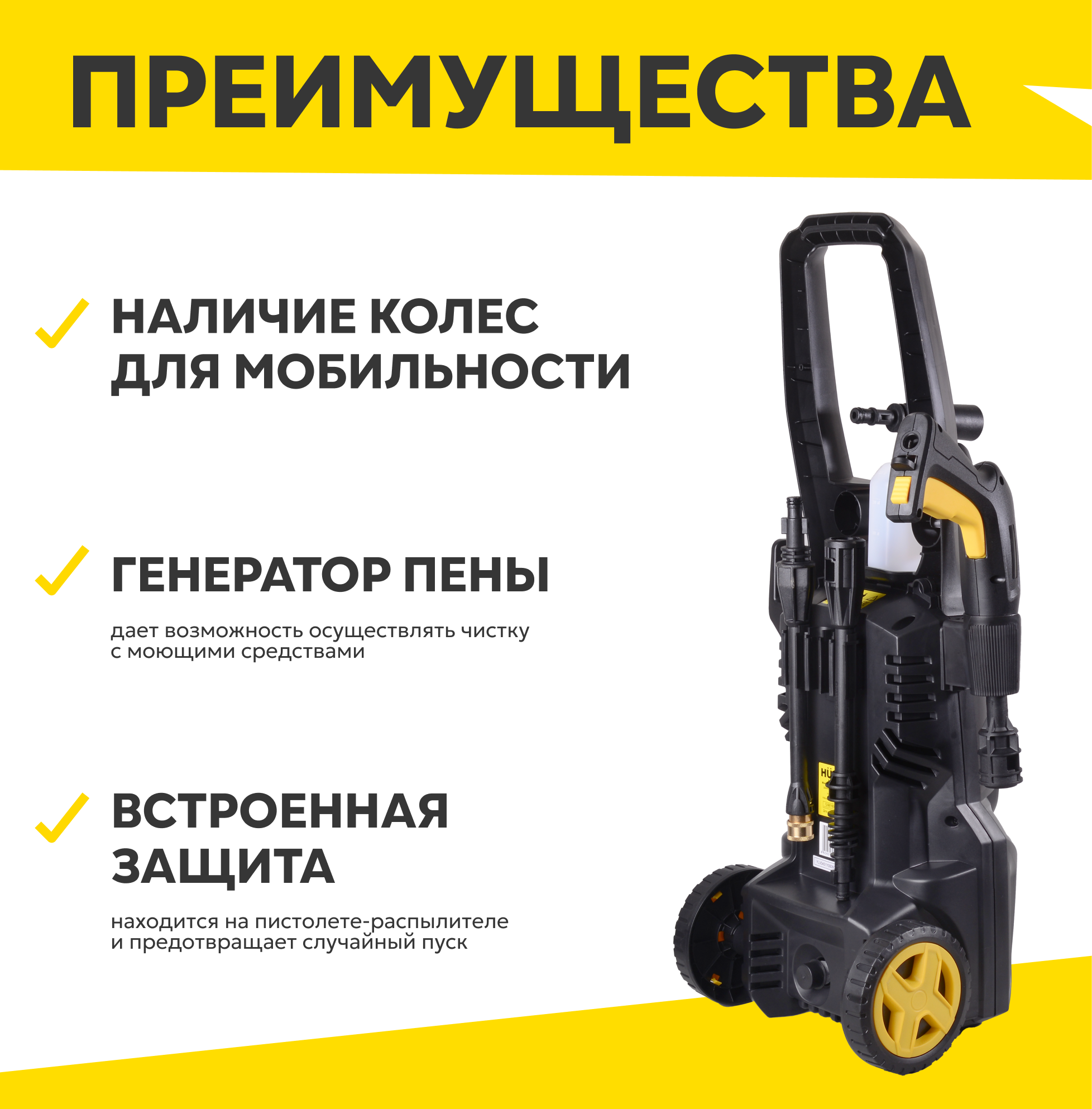 Удобный пистолет, рукоять и колёса мойки, очень выгодная цена, мощность мойки