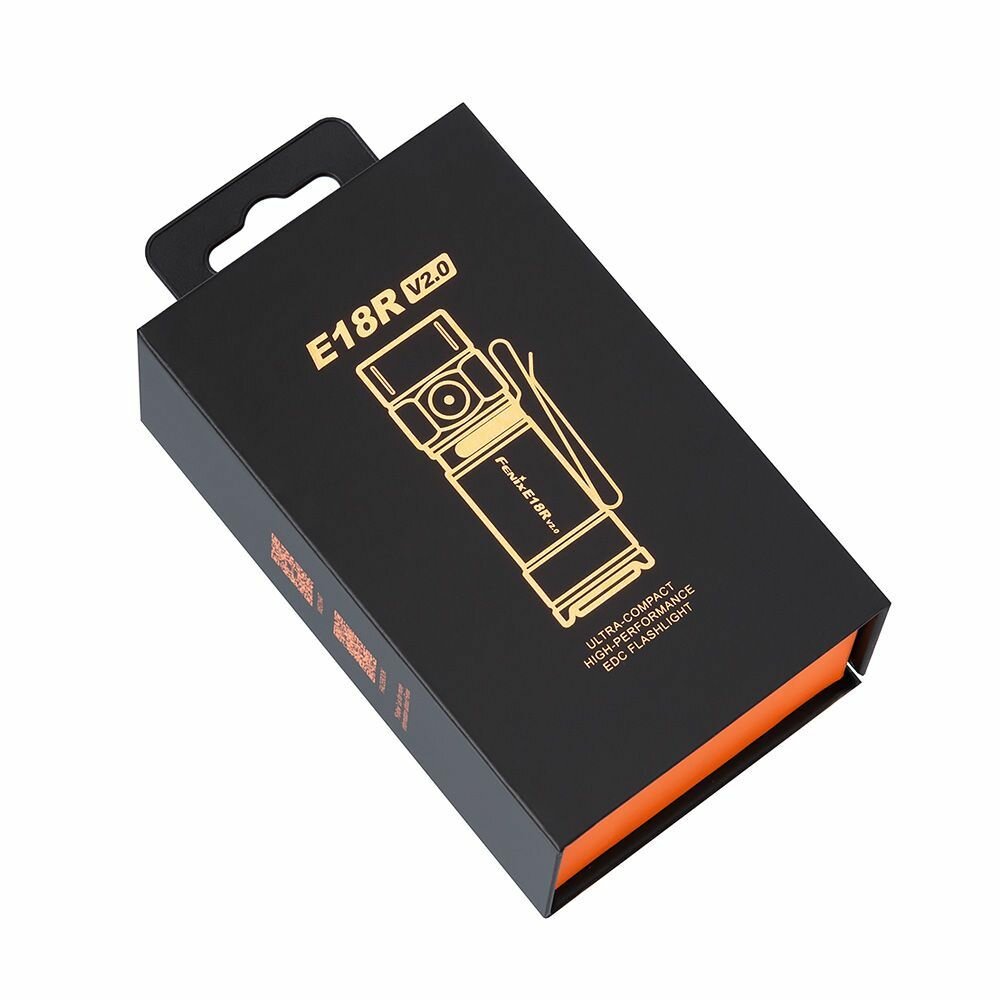 | Подробная комплектация | фонарь Fenix E18R V2.0, аккумулятор ARB-L16-700P Li-ion, кабель для зарядки USB Type-C, ремешок, запасное уплотнительное кольцо, инструкция, упаковка. |