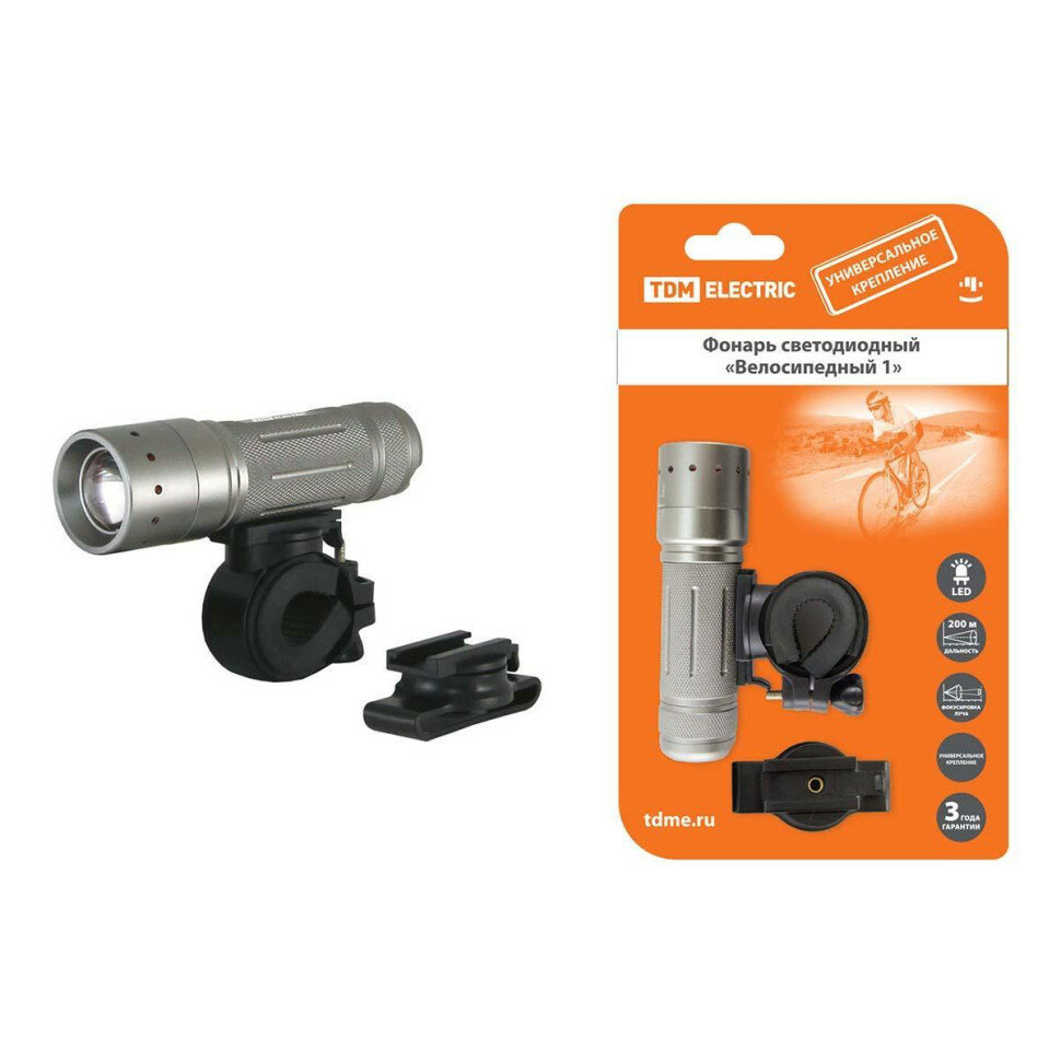 Фонарь Велосипедный светодиодный с креплениями, с возможностью фокусировки, IP54, 1 LED 5 Вт, 36 лм/Вт, 3*AAA, 200 метров, TDM
