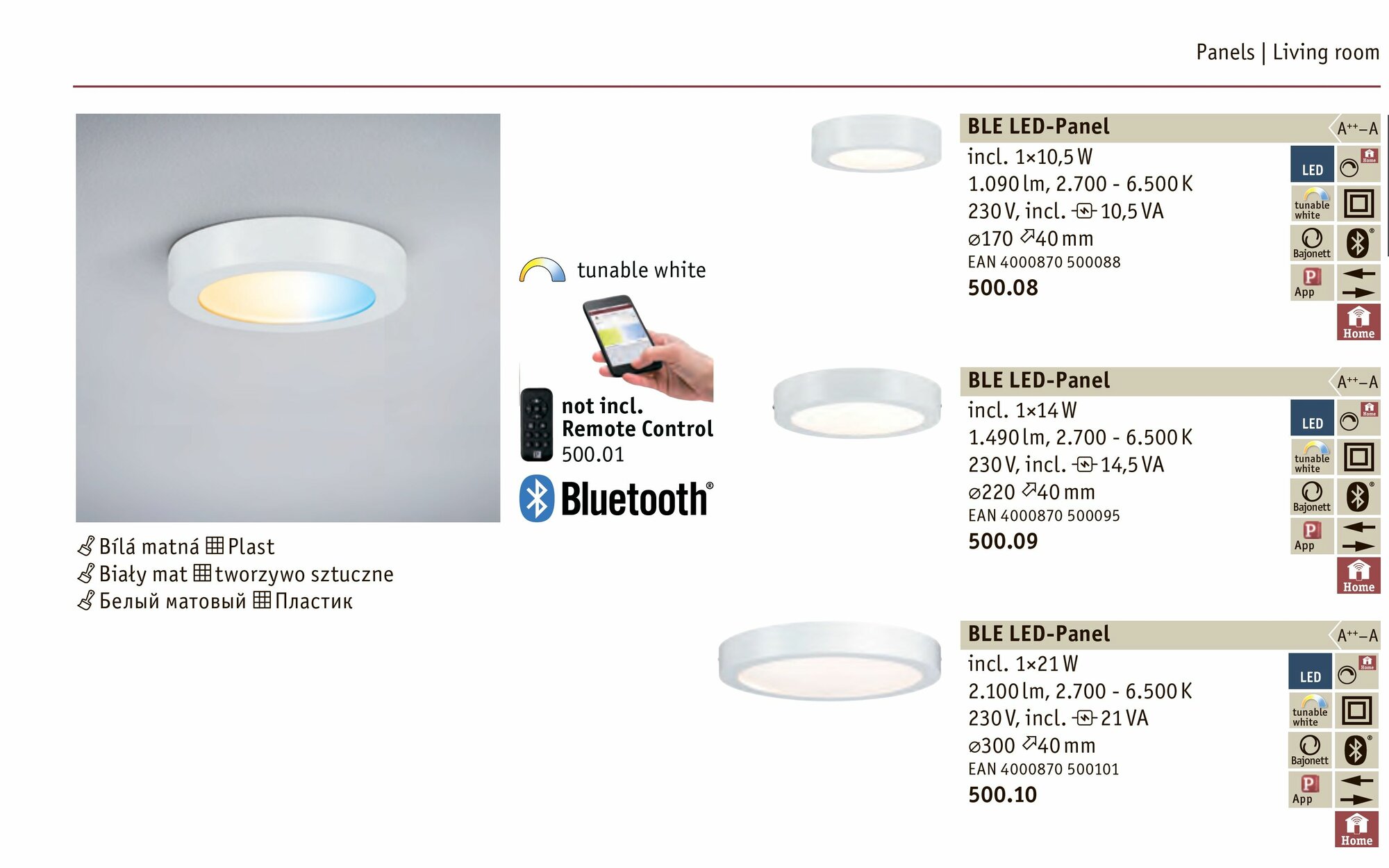Ниже Вы можете прочитать отзывы на Светодиодная панель Paulmann BLE LED-Panel D220 14Вт 1490Лм 2700-6500К 230В Bluetooth Пластик Белый матовый Димм 50009., ознакомится с подробными характеристиками, посмотреть интересные обзоры и фотографии на Светодиодная панель Paulmann BLE LED-Panel D220 14Вт 1490Лм 2700-6500К 230В Bluetooth Пластик Белый матовый Димм 50009..