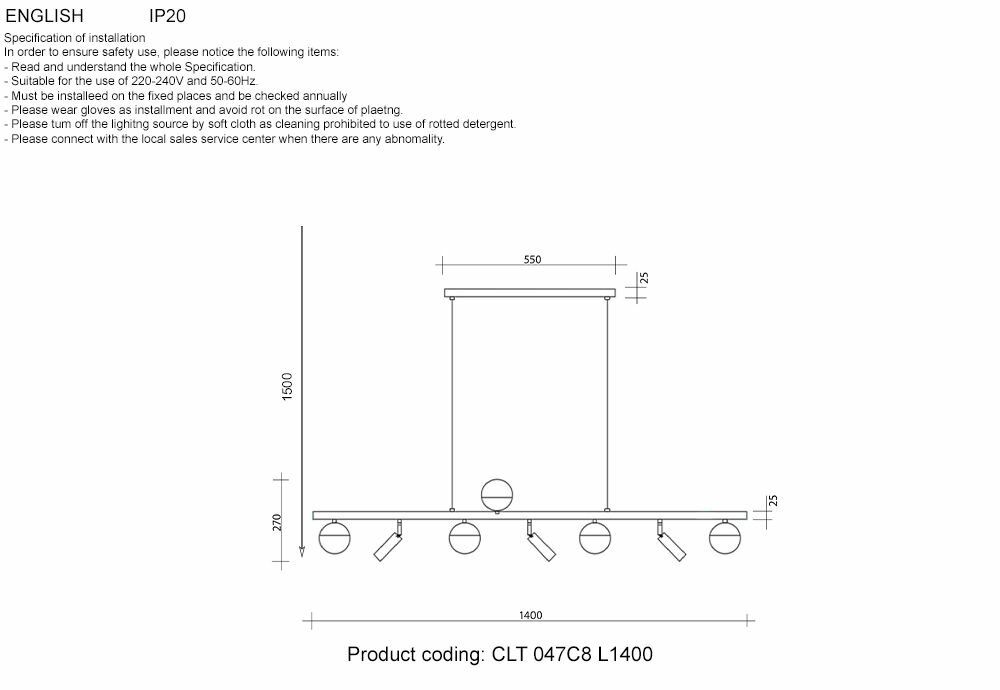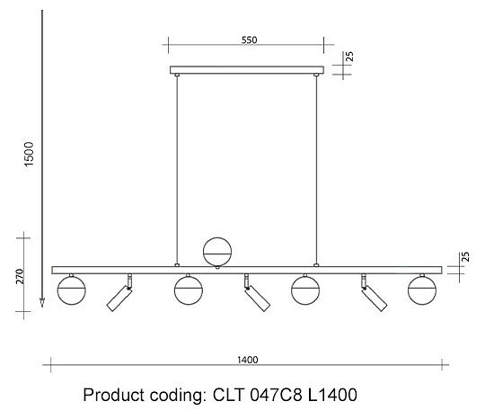 Светильник подвесной Crystal Lux CLT 047C6 L1000 BL-GO