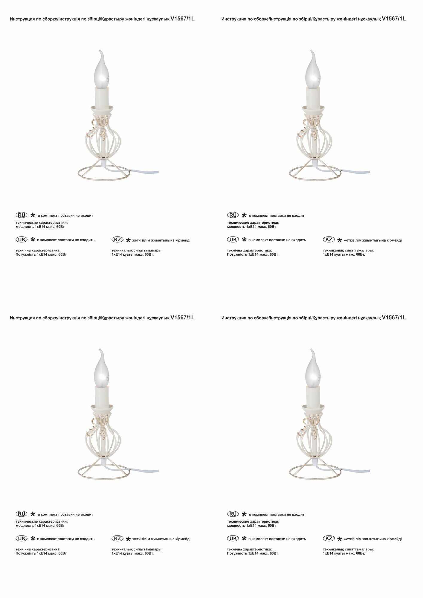 | Мощность одной лампы | 60 Вт |