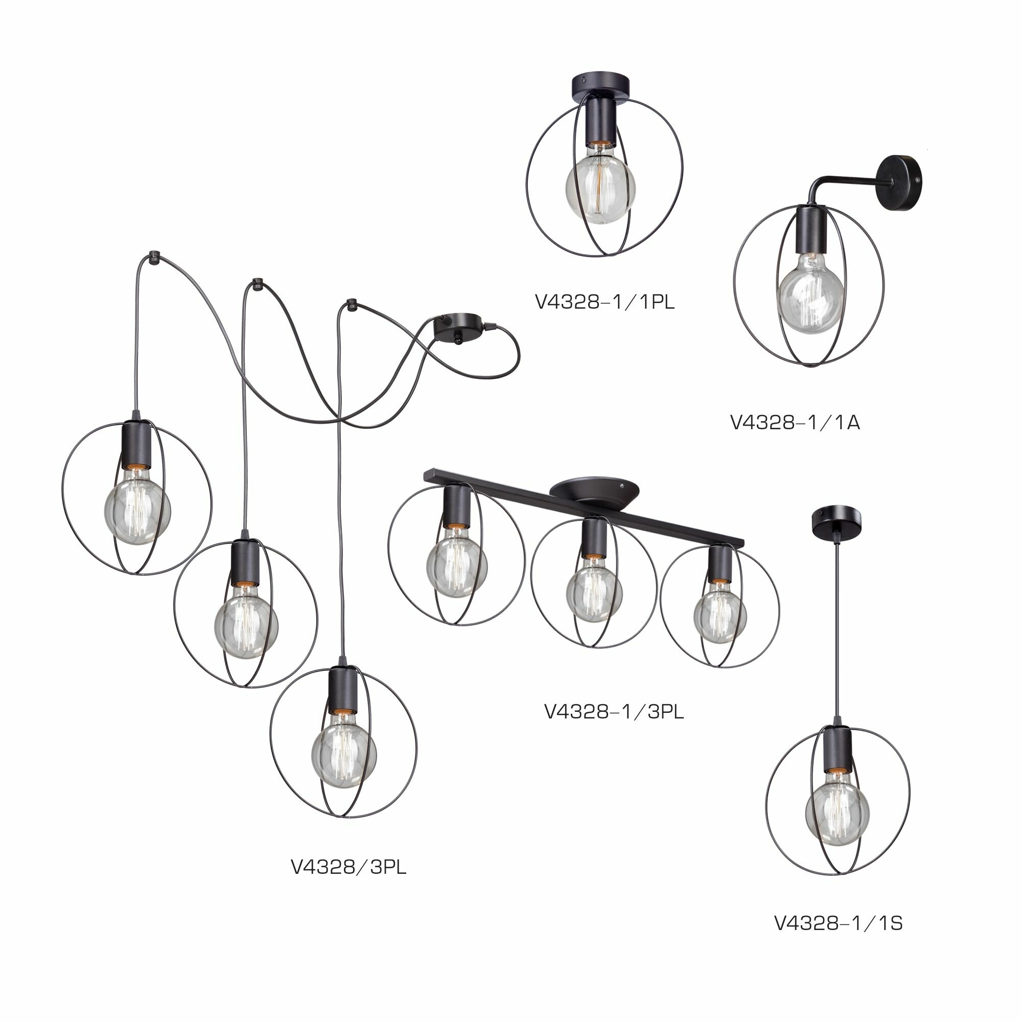 Люстра Vitaluce V4328-1/1S, 1хE27 Макс. 60Вт Черный, Матовый / Виталюче.