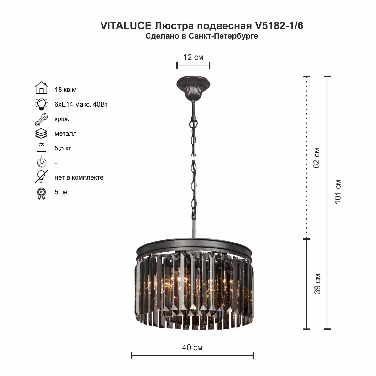 Подвесная хрустальная люстра V5182 Vitaluce Premium V5182-1/6, E14, кол-во ламп:6шт., Черный