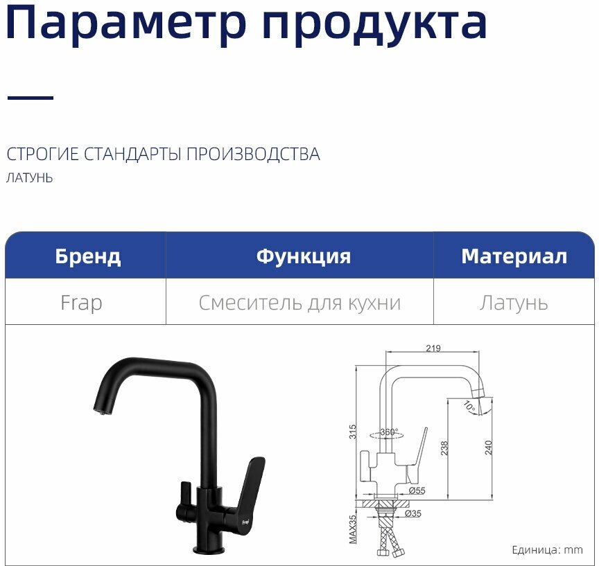 FRAP смеситель для кухнис питьевой водой смеситель чёрный F4362