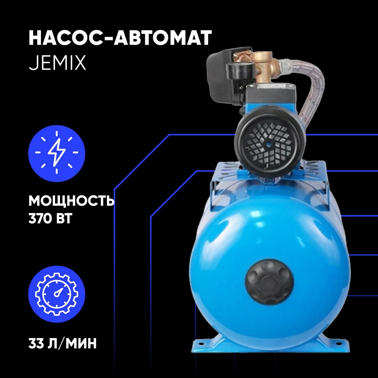 Насосная станция JEMIX 370 Вт, напор 34 м, 33 л/мин, бак 24 л, антиблокировка (ATQB-60)