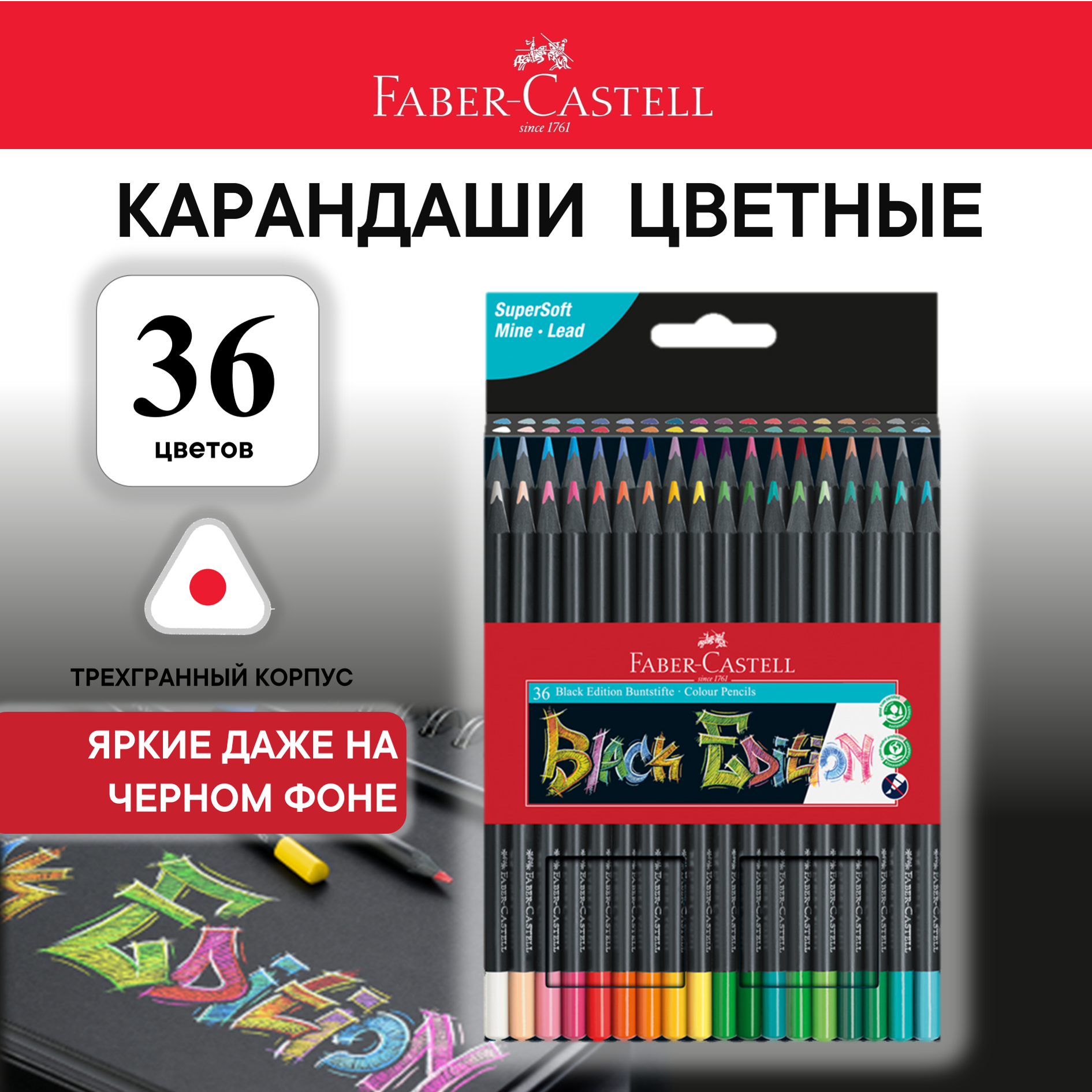 Купить Карандаши цветные Faber-Castell "Black Edition", 36цв, трехгран, черное дерево, заточен, картон.